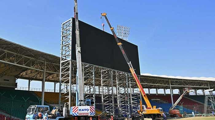 Technicians install a giant screen during the renovation of the National Stadium in Karachi on February 6 2024. — AFPThe Pakistan Cricket Board has finalised a plan for the upgradation of the National Bank Stadium Karachi, with renovation work expected to commence next month.Sources said... https://ift.tt/MkzcyD8